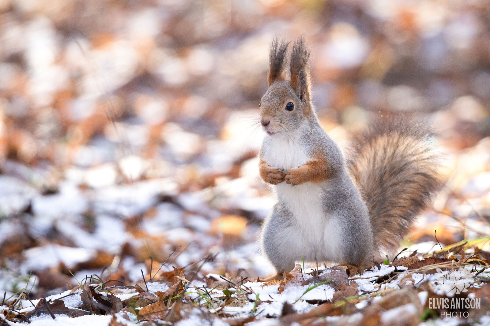 В тот день лес словно застыл в ожидании чуда. Жёлтые листья, ещё недавно шелестевшие на ветру, теперь поникли и скрючились, устав от долгого осеннего танца. Землю уже робко припорошил первый снежок. Белка замерла на задних лапках, восхищённая невиданным зрелищем. Её пушистый хвост покачивался в такт дыханию леса. В воздухе пахло свежестью и морозом. Где-то вдалеке послышался хруст – это лось пробирался через чащу. Белка не испугалась. Она продолжала стоять, будто статуя, любуясь тем, как природа меняет свой наряд, как осень уступает место зиме. Снежинки ложатся на рыжую шубку, превращая её в произведение искусства. Каждая снежинка – это маленькое чудо, неповторимое и прекрасное. Они тают на тёплой шерсти, оставляя после себя крошечные капли, которые тут же замерзают, превращаясь в сверкающие кристаллы. Белка знает: скоро зима полностью вступит в свои права и сейчас она наслаждается моментом, когда мир вокруг становится чище и светлее.